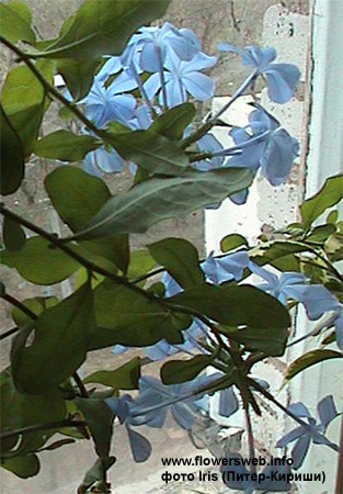 Род носит древнее название этого растения, происходящее от лат. plumbum - свинец: предполагали, что оно является противоядием при отравлении свинцом; кроме того, сок корня этого растения обладает красящим в серо-голубой цвет действием. Около 12 видов, распространенных в теплых и сухих районах земного шара. Плюмбаго из семейства свинчатковых мечтают иметь все, насмотревшись красивых фотографий этого цветущего комнатного флокса, однако, не все знают, что это растение может достигнуть невероятных, совсем не комнатных размеров. Его просто необходимо формировать. Свинчатку можно пускать по опоре (она поднимется до высоты 3-4 метра), можно закручивать на решетку или проволоку. Ее стебли прочные и не такие уж гибкие, поэтому гнуть их надо очень аккуратно, лучше давать радиус побольше. Ее приходится прикреплять к опоре, потому что у нее нет ни усов, ни шипов, она не вьется. После цветения необходима радикальная обрезка не только для уменьшения длины плетей, но и для образования молодых побегов, которые зацветут на следующий год. Размещают в теплом, солнечном месте. Хорошее освещение необходимо особенно зимой, но все равно она потеряет часть листьев. Выдерживает понижение температуры до 4-8 градусов. Летом поливают обильно, не допуская пересыхания земляного кома, иначе растение перестанет цвести, опрыскивают изредка, а подкармливают часто - раз в неделю. Увядшие соцветия обязательно удаляют. Размножают полузрелыми черенками летом. В целом растение неприхотливо и отличается продолжительным цветением. П. ушковидное - P. auriculata Lam. (P. capensis Thunb.). Вечнозеленый кустарник с раскидистыми ветвями, иногда лиановидными. Кора старых побегов буроватая с продольными светлыми полосами. Листья очередные. до 7 см дл. и 2 см шир., широколанцетные или узколопатчатые, постепенно переходящие в узкое основание, голые, цельнокрайние, с двумя округлыми или сердцевидными прилистниками. Цветки в коротких верхушечных соцветиях, белые или голубые. Венчик с пятичленным колесовидным отгибом, около 3 см в диам., переходящим в длинну. узкую трубку. Чашечка железисто-опушенная. Родина - Ю. Африка. Растет в сухих субтропических лесах - в предгорьях и по речным долинам.