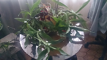 У меня стоит у самой батареи, и в ус не дует. Появился новый стебелек, за неделю сантиметров на 10 вырос. Что делать не знаю. Пытаться укоренять в другом горшке, или пусть так сидит, или это цветонос появляется... Причем, новый стебелек не растет вверх, а лежит на столе... Знатоки, может ему опору поставить, я даже не знаю...