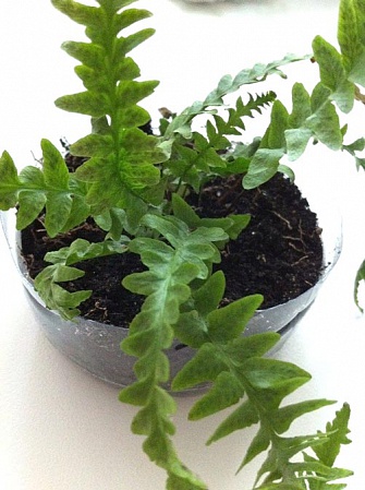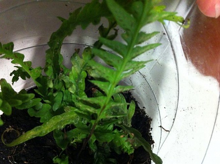 Всем здравствуйте! Просто захотелось поделиться Купила некоторое время назад папоротник Quercifilix zeylanica. Не стала пытаться адаптировать к условиям квартиры, сразу поместила в террариум. Там он очень быстро выпустил не только новые листы, то бишь стерильные вайи, но и очень активно расспороносился! Очень забавные спороносные вайки - как длинные хвосты Вот (коричневые справа): вот тут эта же фотка, но крупнее: