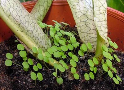 Добрый день.Мне недавно отрезали детку микросорума мусифолии(извините если неправельно назвала)с треугольничком почвы.я его посадила,и вдруг...(посмотрите на фото)стала куча ростков и я подумала вдруг это папоротнички из спор.сорняки у меня тоже иногда ростут но обычно 1,2 ,а тут такое количество.Подскажите,можно ли надеяться,что у меня будет столько папоротников.