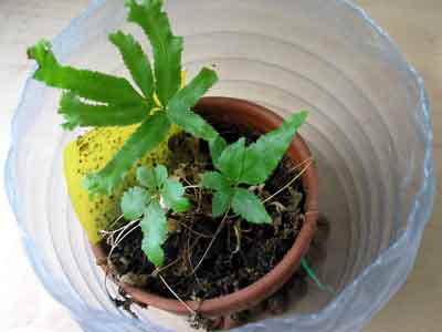 Janna Ali, на сухой период, конечно. Причем не все птерисы, многим достаточно обрызгивания и вазочки с мохом рядом. Это только для реанимации. Пробовала под пакет, но листья тонкие, гниют моментально. Ну и т.к. птерисам яркий свет не нужен, банку можно задвинуть в дальний угол.