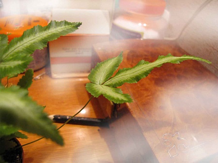 kalandr, я летом тоже не удержалась. Вот мой опыт. Пересадила, почти перевалила (свеженький совсем был) в следующий горшочек. Постаралась как можно меньше тревожить. Все равно листик за листиком постепенно стали отсыхать. Сейчас остался один только, но пока стоит. И проклюнулось что-то новое. Ведет себя, как стандартный папоротник: нет, чтоб сразу загнуться (поддерживает состояние "жалко выбросить"), но и не отрастает, чтоб красиво (типа "не лезь, сам разберусь!"). Влаги хочет. Я поставила его в глубокую стеклянную вазу. Может, поэтому и лист последний не сохнет? Опрыскиваю. Но внятного ответа пока не дает...