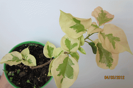 Розмарин, Странно,у меня раз она была не пестролистной,после полного опадания листвы,но на моей листья не сердцевидные а вытянутые.