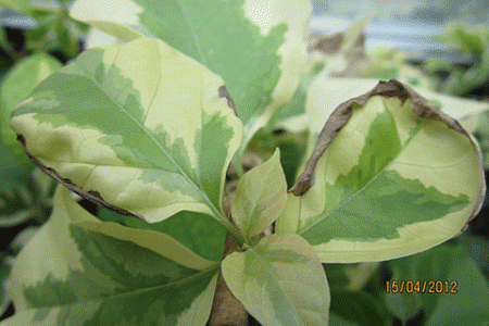 IMG_4817.gif - краевой ожег Это – недостаток кальция, точнее – не поступает он к листикам. Что стало причиной – большой вопрос. Может, действительно, недостаток кальция. Может, избыток калия. Кальций с калием конкуренты. Избыток азота приводит к недостатку кальция или калия. Возможно, избыток хлора, натрия. Вообще, в клетку (осмос) первыми поступают самые легкие катионы и анионы. Т. е., хлор и натрий набиваются в клетку первыми, растением не используются, осмотическое давление в клетке растет, другие ионы не попадают. Что конкретно у Вас… да никто не скажет. Можно поэкспериментировать. Опрыскивать по листу, например, брексилом кальция (без бора кальций не усваивается). Пролить кальциевой селитрой. Если в почве перебор хлора и натрия, без смены субстрата, наверное, не обойтись.