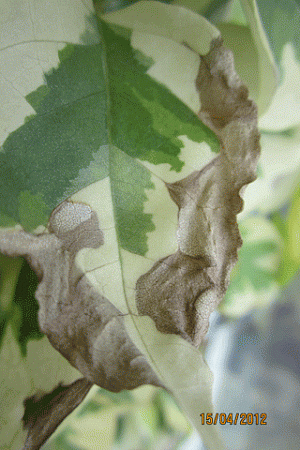 SOS! Вопрос к знатокам:?: У San Diego Red Variegata сохнут краешки листьев, что это ожеги от солнца, пересушка или другое? Magic: молодые листья растут какие то рельефные, с полупрозрачными прожилками на верхней и нижней части листа (у фиалок подобное бывает от залива), не понимаю что с бугой?