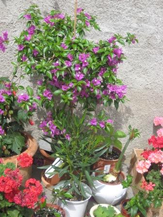 "Растение свето- и теплолюбиво. Это главные условия обильного цветения. Летом бугенвиллию можно выносить на открытый воздух, обязательно на хорошо прогреваемое солнцем место. Во время роста и цветения полив обильный, 2 раза в месяц нужны подкормки органическим или полным минеральным удобрением. В сухую погоду полезно опрыскивание листьев.