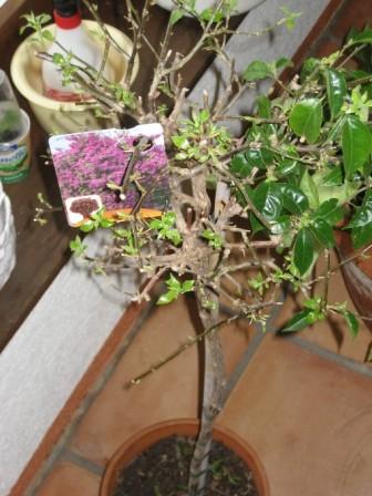 У вас он хоть зелененький был и веточек не вижу безжизненных. Моя выпускала тонкие, бледные ветви. На них по несколько листиков было светло-зеленых. А у вас, смотрю, они все одеревеневшие. А на одеревеневших, интересно, цветы могут появиться?