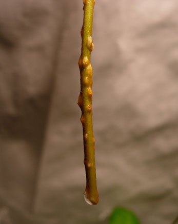 Девочки, караул, обломился мой корешок! Единственный и неповторимый. Плавает в стаканчике сам по себе. Я чуть с ума не сошла. Ежели они такие хрупкие, то как их вообще в землю сажать? Теперь, вот, подскажите, что это такое? Какие- то пупырышки дает, а корней нема.