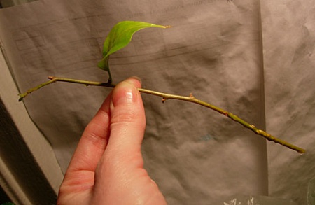 А вот сам черенок. Даже если даст корни и потеряет последний лист, такое можно сажать?