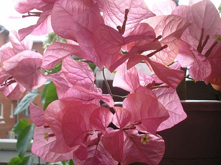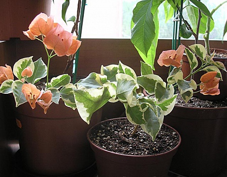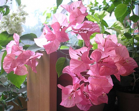Бугенвиллея предпочитает яркий рассеянный свет с ежедневным 4-часовым преРыванием на открытом солнце.