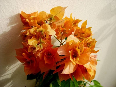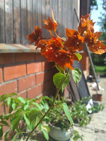 относительно цветения при 14 град: а я вообще люблю больше, когда мои буги цветут зимой и весной..не знаю, у кого как- у меня летом буги от жары и мельче и цвета бледнее...Красная махровая сейчас вообще светломалиновым цветёт...оранжевые тоже неяркие....Может, на их родине спасает их влажность воздуха+ движение воздуха (уличники это там таки), а на остеклённом балконе условия им менее комфортные летом...