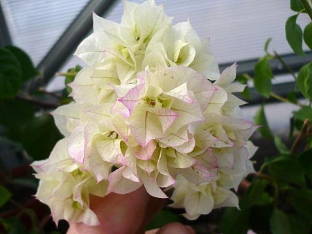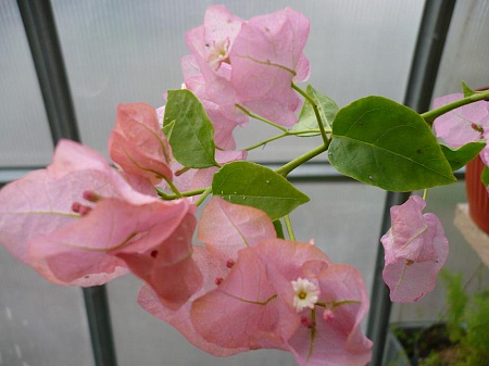 Первые впечатления: огромные по сравнению с размером листа прицветники, компактный куст,легко цветущий и долго цветущий (прицветники держатся уже месяц) Есть небольшая вариегатность листьев. Один минус- очень похож на Buis de Roses (а может это плюс?).
