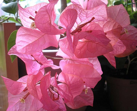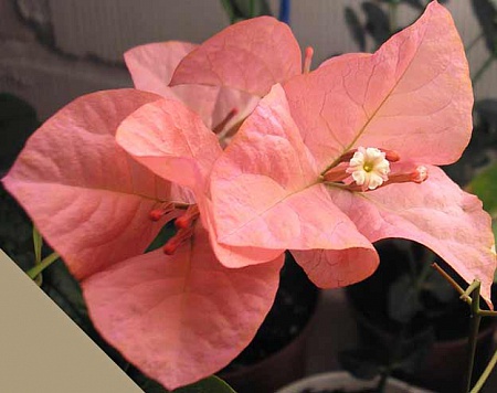 Первые впечатления: огромные по сравнению с размером листа прицветники, компактный куст,легко цветущий и долго цветущий (прицветники держатся уже месяц) Есть небольшая вариегатность листьев. Один минус- очень похож на Buis de Roses (а может это плюс?).