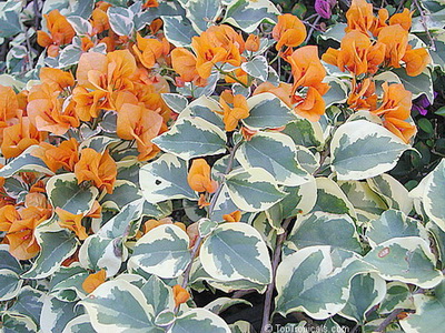 А вот Дельта Даун как раз олицетворяет то, почему я не заводила доселе пестролистные буги: масло-масляное! Бледные цветы напрочь теряются на фоне листьев! Для меня бугенвиллея- прежде всего красивоцветущее растение. И если цветы в общем восприятии экземпляра тонут в пестроте- оно мне сто лет не надо. Для меня это НЕкрасиво. Я потому и купила Дафин и Изи Пинк тюменскую(подозреваю, что на самом деле это сорт Распберрри Айс)- что цветы там яркие, и их несмотря на пестроту листьев видно хорошо. То есть красота одного не мешает восприятию красоты другого.Имхо, моё мнение, не навязываю. Просто, как дизайнер дизайнеру, ювелир ювелиру- обосновываю... Это в общем-то,известное дело: при оформлении любой красивости вам порекомендуют расставлять акценты, будь то макияж, будь то ландшафт, будь то костюм, будь то дизайн интерьера. Иначе общее впечатление- овсянка...Вот для меня буги с бледными цветами и пёстрыми листьями- это овсянка...за малыми исключениями типа буги Сакура Вариегата, может быть..и то не факт- может, увидь я её вживую, тоже б не запала отродясь...