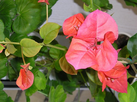 К слову сказать, мои тоже пока не желают отдыхать, не так буйно как летом, но всё же балуют цветением, как зовут не знаю, одна из моих первых бугенвилий: