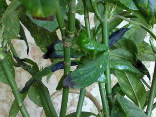 Основные симптомы - чернота на листьях и "обугливание" частей веточек. Что это может быть???