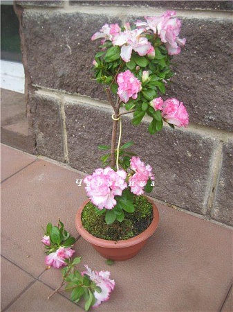 Ничего, у меня даже когда пропускают цветение я не очень обижаюсь на них, жду следующего года, главное чтобы жили, а цветение всё равно будет, куда оно денется. А клещ у меня на азалии ни разу не нападал, рядом полно других вкусняшек, так что им повезло, растут не мучаются. Но вот такая у меня случилась неприятность, мой одноногий, которого готовила под бансай-упал, отломилось две веточки. Ветер два дня был сильный, и хоть меня муж предупреждал что случится непоправимое и мои цветы разлетятся-не вняла, вот и результат.