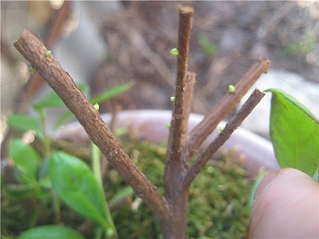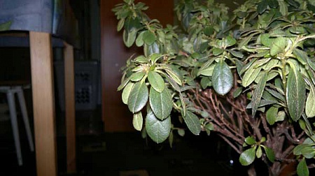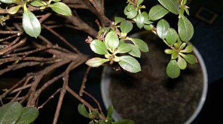 Жалко вы фото вредителя не сделали. На азалии он тоже был замечен? Если азалия такая уже 1.5-2 мес. стоит, то мне кажется что она уже не восстановится. Я когда свою азалию обрезала (просто решила сделать кустик покомпактнее) , так у неё на голых ветках довольно быстро проснулись почки, где-то меньше месяца прошло. Сейчас фотку найду, посмотрите, у вас такого на ветках нет? Если нет, то мне кажется у вас погибла корневая система и скорее всего это залив. Да-да, азалию можно залить. Вот фото.