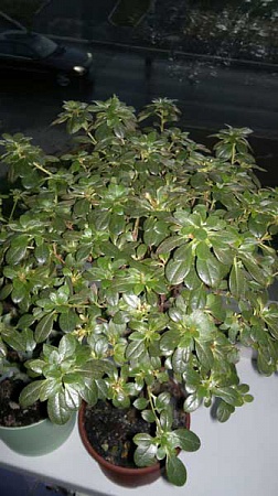 купила на распродаже отцветших растений, так приглядывала ее цветущую очень нравилось но дорого было для первого опыта с этой растишкой. много листиков опало во вторую неделю после приобретения, потом прям ни одного не упало, сейчас беспокоит что поникли. полив раз в неделю, раз в полторы недели с лимончиком, но если погода дождливая то реже, просыхает дольше. опрыскиваю утром, вечером раза два. удобрения пока не пробовала, думаю "азалией" подкормить. перевалку делала по статье , кажется вашей ))