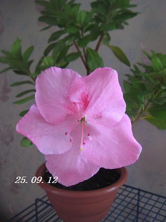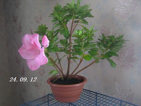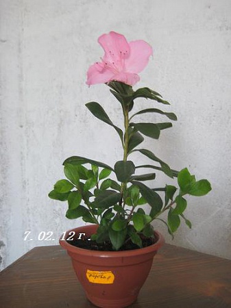 Открыла первый цветочек азалия, черенок которой я укореняла в прошлом году. Она здорово подросла. Но вот цветы заложила неодновременно, по-видимому я прищипывала её не в один день почему-то. Теперь начну обращать на это внимание. Напомню фотками историю этого череночка, может кому это будет интересно. На укоренение я его поставила 13.04.11г.(Фотки к сожалению нет. Укореняла его в смеси торфа с перлитом.) Ну и дальше о нём фотками.