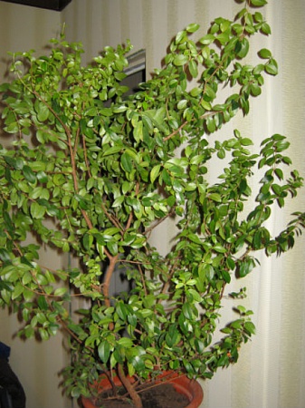 Lusia_27, наверно, у Вас, действительно, мирт обыкновенный крупнолистный. Очень красивое здоровое ухоженное деревце. Но если к нему еще и руки приложить, то вообще будет всем на зависть! Как-нибудь ствол искривить по-экзотичнее, веточки выгнуть, лишнее отрезать, а оставшееся прищипывать через каждую пару листьев. Вот, тогда, будет на чем глаз остановить!Тогда, глядя на него, будете представлять дальние заморские пейзажи... А сейчас пока, воображение рисует милую березовую рощу в нашей средней полосе.... Впрочем, главная проблема в том, что "береза" эта со временем станет внушительных размеров и начнет раздражать домочадцев и Вас утомит...