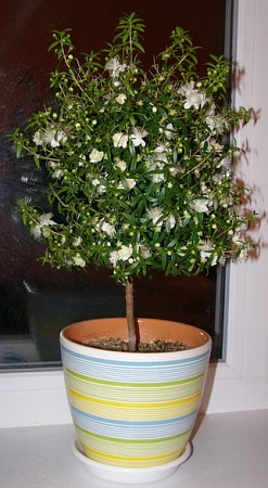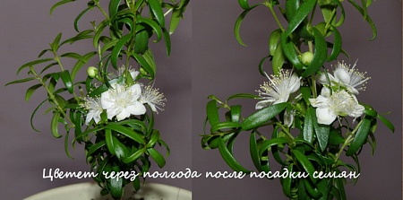 Добрый день! Хочу поделиться историей своего мирта. Мирт я пытаюсь вырастить с 2011 года. Сажала семена. Были удачные попытки. Только сеянцы в возрасте примерно 5-6- месяцев засушила над батареей. В третий раз я уже была подготовлена и вооружена) Посадила семена от Гавриш Гименей в торфяные таблетки в январе 2013 года. Вот нашла старые фото из своего архива: Сеянцу 6 месяцев и он в бутонах!