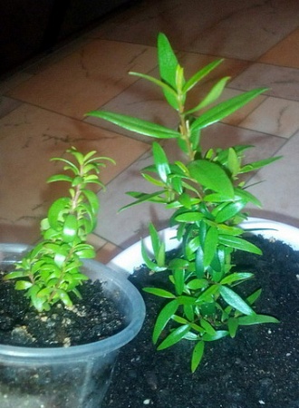 Всем доброго времени суток. Принимайте в свою компанию. Каюсь, веточку про мирты до конца ещё не дочитала - слишком стремительно у меня развиваются события. Когда начинала читать, миртами я только заинтересовалась, пока дошла до середины у меня уже были посеяны семена мирта (не взошли ещё), потом появился мирт боэтика (укоренённый черенок с 3-мя молодыми веточками), теперь ещё и калистемон. Вот как раз по нему и вскочили вопросы. Покупала в Зелёной стране, продавец говорит, что он у них стоял больше года. Пришёл пышным и цветущим, перезимовал (вроде как в холоде), его обрезали, теперь опять обрастает. Оцените, плиз, опытным взглядом моё приобретение.