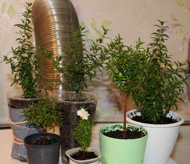 Вот вместе несколько миртиков. Страшненькие))) Но это все эксперимент. Кто-то будет кустом, кто-то деревцем. Один черенок живет в открытом грунте на улице. Завтра сделаю фото. Разочарована. Столько читала о выращивании мирта в ОГ. Черенок в ОГ почти не вырос, а в горшке, но на улице превратился в небольшой куст. Я их специально не стригу, терплю. Хочу посмотреть, как будут пушиться без обрезки и прищипки.