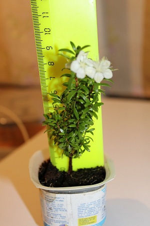 Я не подсвечивала мирты зимой. Но они стоят на южном окне, днем солнечно. Внимание, раскрываю все секреты) 1, Проращивала семена под обычной лампой дневного света. Фото №1. 2. Муж подарил фитолампу из Китая и крошечные сеянцы росли под фитолампой на расстоянии 15см. Фитолампы стоят только с января по апрель. Фото №2. 3. Подросшие мирты подкармливаю удобрением Флорист. Маленькие мирты не подкармливаю. Мирты и раньше цвели с этим удобрением. Фото № 3. 4. В этом году поочередно удобряла Флористом и Бионекс-1. Фото № 4. 5. Мирты цвели через полгода после посева семян и без фитоламп, но стволик был тоньше. 6. Ежедневно разговариваю с миртами и созерцаю)))