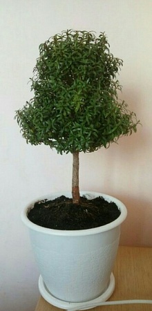 Нет, мой живет не на улице. В комнате на южном окне. Но окна открыты и он у открытого окна. Зимую на северном балконе. Там 10-15 гр и разумеется подсветка. Если мирты стоят на даче, согласна, это способствует развитию и здоровому виду. Но мало вероятно, что это заставит их набрать за 6 мес такой ствол и одновременно зацвести. Отстоянной водой все обычно и поливают . Это тоже не новость.