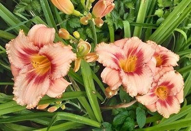 21. MARY ETHEL ANDERSON (Salter, 1995, 7/46см), миниатюрный сорт, кремово-персиковый с отчетливым красным глазом высота цветоносов 45-50 см, 400р; 22. GENE CROCKER, (Carpenter, 1987, 15/76), яркий, желтый, круглый, неприхотливый, 2 веера 300р; 23. CALLING ALL ANGELS (Trimmer, 2002, 12/60), Малинового цвета со светло-персиковыми краями, хорошие рюши, 400р.