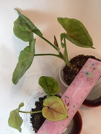 Сингониумы. Меня все лето не было в Москве, сингоши стояли на даче в тени под присмотром мамы, поэтому вариагетность на некоторых плохо видна, нужно ставить на свет, ювинальные листики все будут по сорту.
