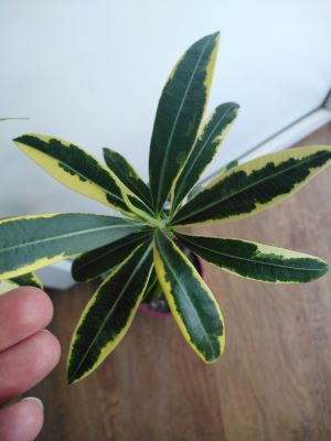 Якобиния, сплеш вариегатность. Макушка зеленая, прикорневые побеги вариегатные (сейчас тоже позеленели). 600 р