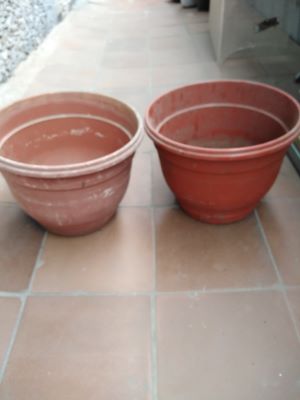 1. Горшки подвесные с поддонами. 21 см. Потертый- 40 р, второй- 100 р.