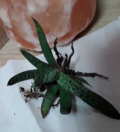 5. Burmanica 1500 взрослое растение с 3 стволами и цветоносами. Перевалю в транспортировочный горшок, без лесенки. Очень интересные листочки с шелковистым отливом.