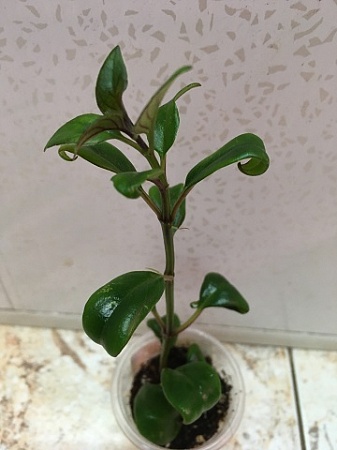 Пеперомия. Получила листочком как Red Luna, но пока выросла, цвет листьев не бордовый, хотя очень красивый. То ли не хватает чего, то ли еще что. Взрослая, зацветает. 400 р.