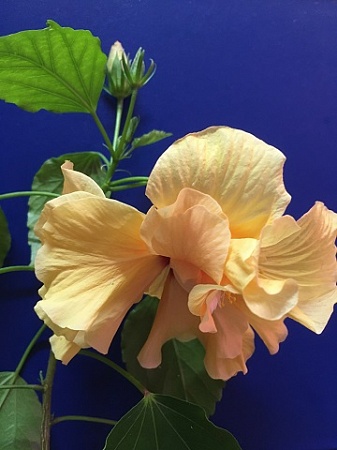 Гибискус персиково-оранжевый махровый. Зацветает легко, бутоны идут один за другим. Взрослый, цвел, обрезала, стал обрастать.. Снизу прирос псилот, одно из древнейших растений на земле. 250 р Фото цветения моего растения.