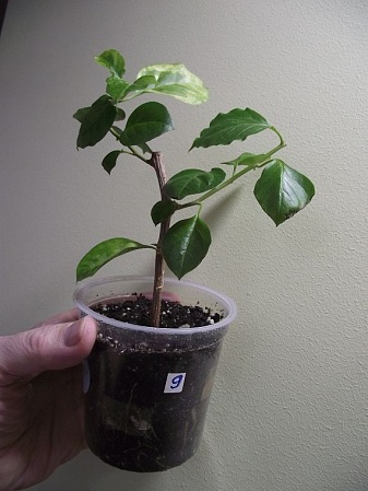 8. Бугенвиллия Dophine - по 100 р. Вариегатный сорт. Ценится в том числе за красивую листву. Прицветники ярко красные. В 200-г (№ 9) и 400-г стаканах (включая № 9а). Фото цветения не мое.