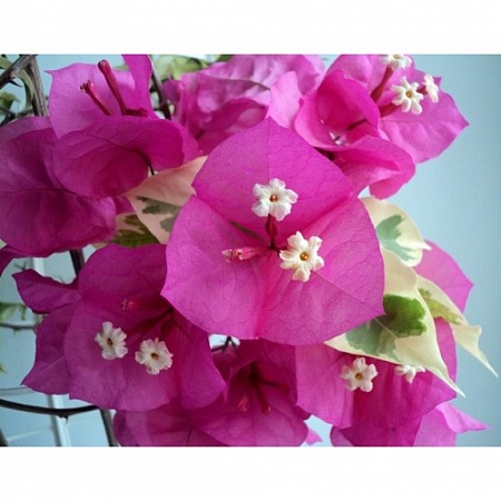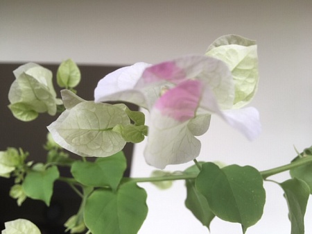 10. Бугенвиллия Snowcap - 150 р. В 400-г стакане. Моя любимая из моей коллекции. Цветение мамки прилагаю. Камера не передают красоту прицветников! Крупные листья. Растет - не успеваю стричь. ПРОДАНА.