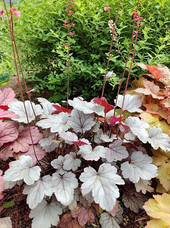 Silver Gumdrop (осталась 1 шт 250р, 2 -по 200) Один из сортов серии «Dolce» - нежность. Очень выигрышно выглядят полуглянцевые листочки серебристо-стального цвета. Молодые листья весной имеют нежно-сиреневый оттенок. Цветет розовыми(коралловыми) колокольчиками на высоких стеблях.