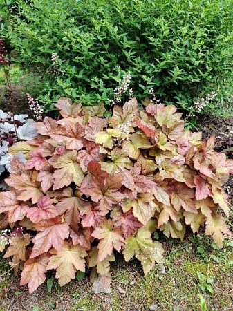 Redstone Falls (осталось 3 шт по 150р) Быстрорастущая, надежная, яркая и эффектная гейхерелла. Листья имеют теплые осенние оттенки, на солнце становится более ярких, красных тонов. При меньшем попадании солнечного света на кустике появляются листочки разных оттенков: от зеленоватых до золотисто-желтых и оранжевых. Можно использовать в качестве ампельного растения.