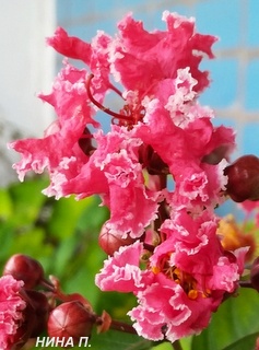 Лагерстремия Berlingot Menthe-800 - Редкий сорт лагерстремии с крупными розовыми цветами, окаймленными белым ажурным кружевом. Компактный сорт.