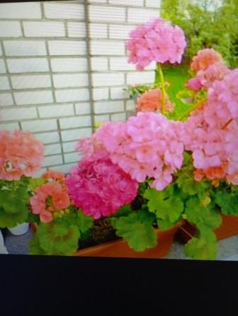Пеларгония малиновая из старых советских сортов, крупноцветная, шапки огромные, 150 руб. На фото в центре и немного левее.