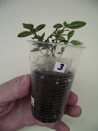 5. Мирт крупнолистный - 250 (№ 1) и 200 р. (№ 2). В 150-г стаканчиках. Укореняшки от материнского растения из Тимирязевской Академии. Бурно растут. Скоро надо пересаживать.
