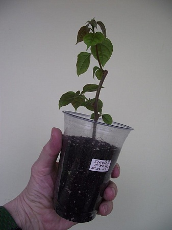 5. Бугенвиллия Scarlet O`Hara № 2 - 200 р. Два черенка в 300-г стакане. Пересаживать не надо. Пошла в рост после перевалки из маленького стаканчика, так как корни повылезали наружу. Полутепличная.