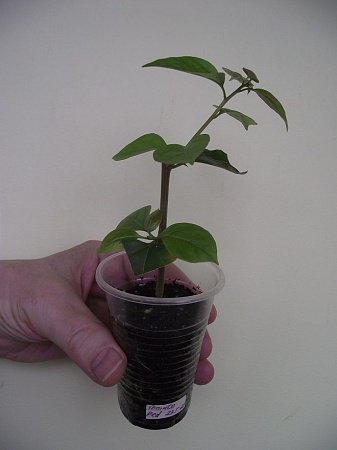 3. Карисса - 250 р. Или иначе - Домашняя слива. В 200-г стакане. Растут две ветки от одного корня. После появления корней пошла в рост.