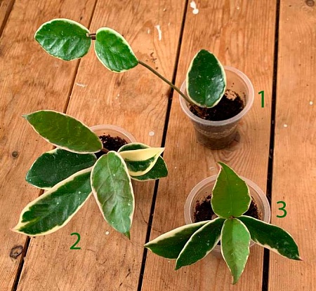 Крепко укорененные черенки, все повыпускали уже новые росты с листьями. В 4-м 4 черенка с мелкими листьями воткнула, но новые листья вижу дает нормального размера.