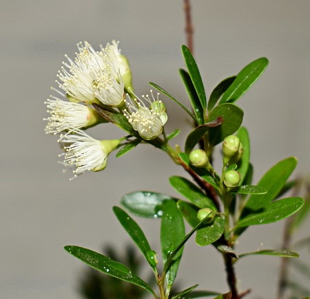 44. Syzygium paniculatum Dwarf, мелкий сизигиум. В комнатных условиях растет более разреженным, чем на фото с улицы, но тоже мелкий. Мельче только буксифолиум из тех, что видела. Но у этого активнее и понятнее рост, мягче ветвление. Новые росты светлые . 800,1000 АНя, 1300 Оля
