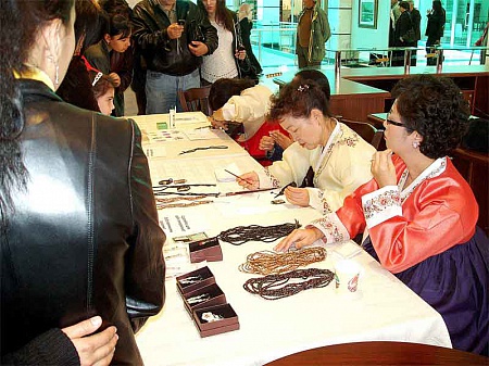 Тут же сидят мастерицы, что рисуют и продют. Правда толпа стоит и смотрит, а покупающих я не видел...
