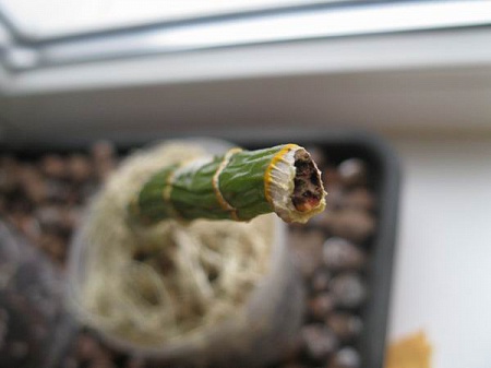 у маленького, отсаженного ещё самый кончик засох, выживет или нет? а большой так и отваливает листья в день по одному